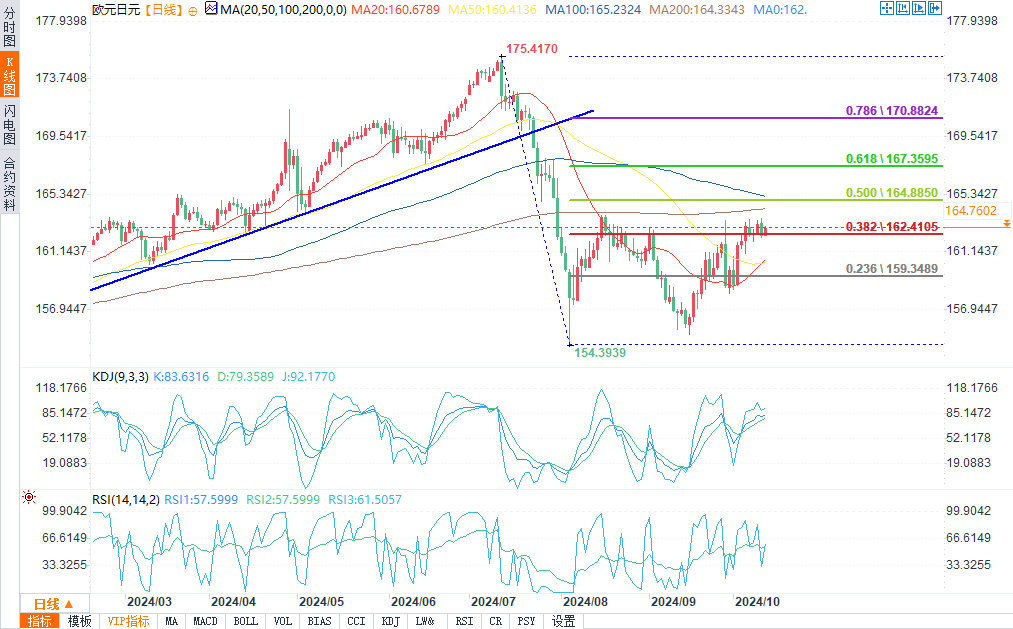 美元指数在两个月高点附近盘整。交易商减少了对美联储在今年剩余政策会议上进一步大幅降息的押注。以下是对欧元/美元、欧元/英镑、英镑/美元、欧元/日元几组货币对的技术分析。