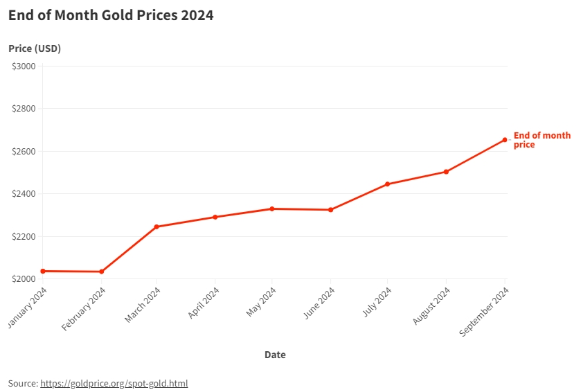 GoldPrice表示,过去一年,黄金价格上涨超过45%。专家认为,到2024年底,黄金价格将攀升至创纪录的3000美元。