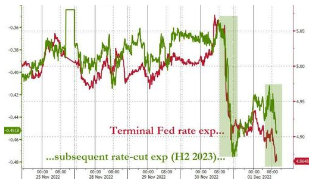 根据利率期货市场的定价显示,交易员现在预计美联储将在明年把主要利率提高到约4.9%的峰值,而本周初的预测是5%,11月初的高点是5.14%。