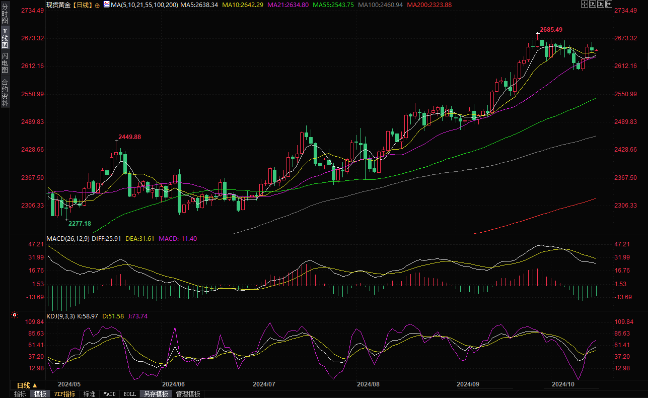 现货黄金窄幅震荡,目前交投于2648.42美元/盎司附近。金价周一冲高回落,尽管地缘局势早些时候给金价提供避险买盘支撑,金价一度升至刷新一周高点至2666.70美元/盎司,但随着美元反弹至十周高点,金价回吐涨幅并小幅收跌,收报2648.49美元/盎司。