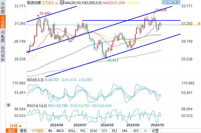 现货白银报31.171美元/盎司,跌幅1.12%。