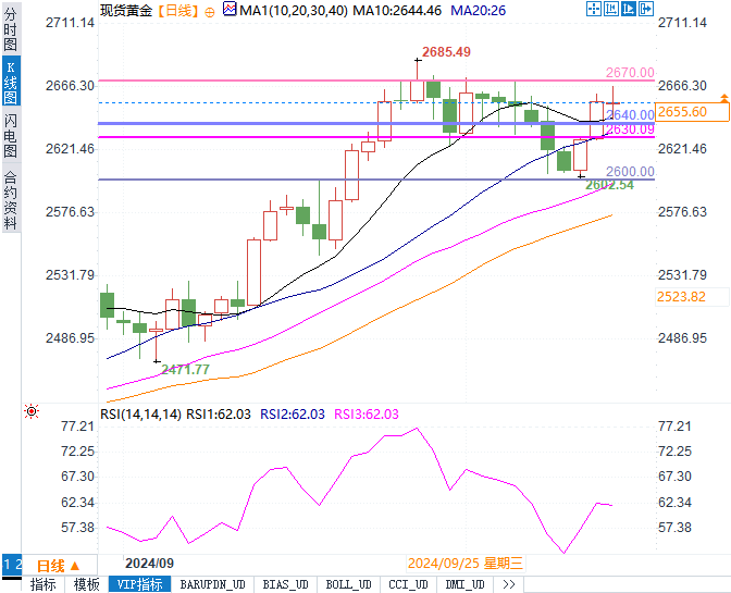 现货黄金在欧市早盘一度升至2666.81美元/盎司,创下逾一周高点。这一走势主要受中东地缘政治危机以及市场对美联储降息预期的提振。