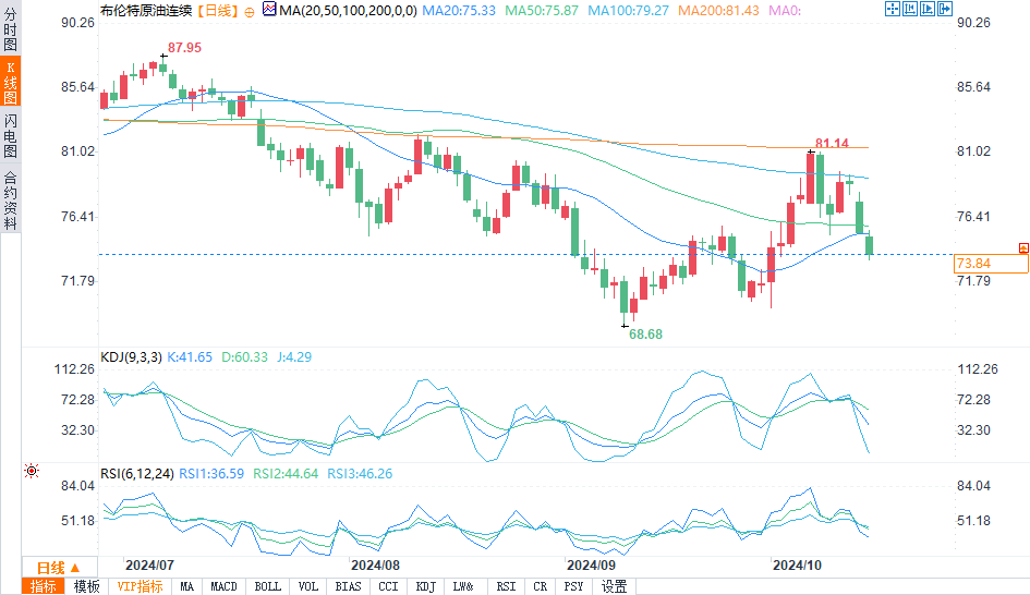 油价因需求担忧和供应担忧缓解而下跌受需求前景下降和供应中断担忧缓解的推动,WTI原油期货价格下跌逾3美元,跌至近两周低点。一篇媒体报道称,以色列可能不会将目标对准伊朗的石油设施,这有助于油价下跌,缓解了对石油供应严重中断的担忧。