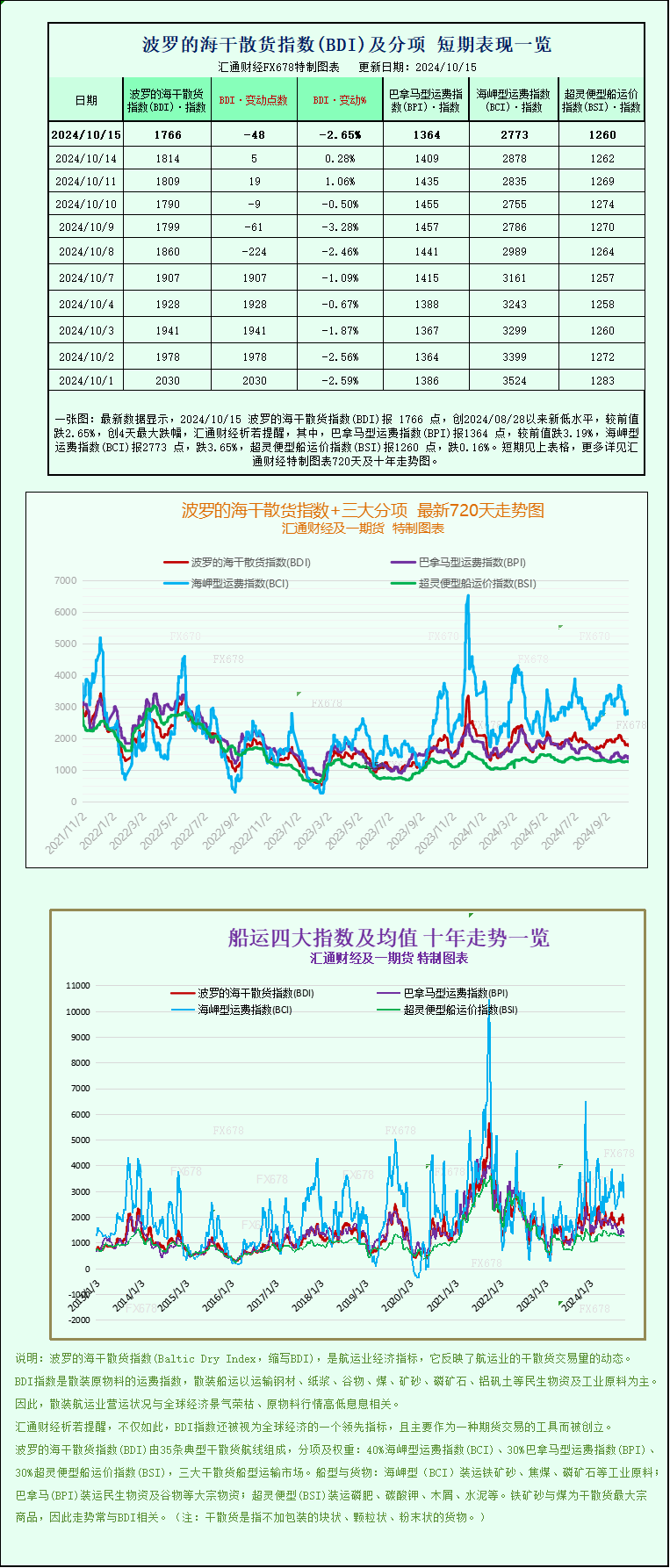 标题:一张图:波罗的海指数跌至一个月以来的最低点,因各类船舶运价下跌