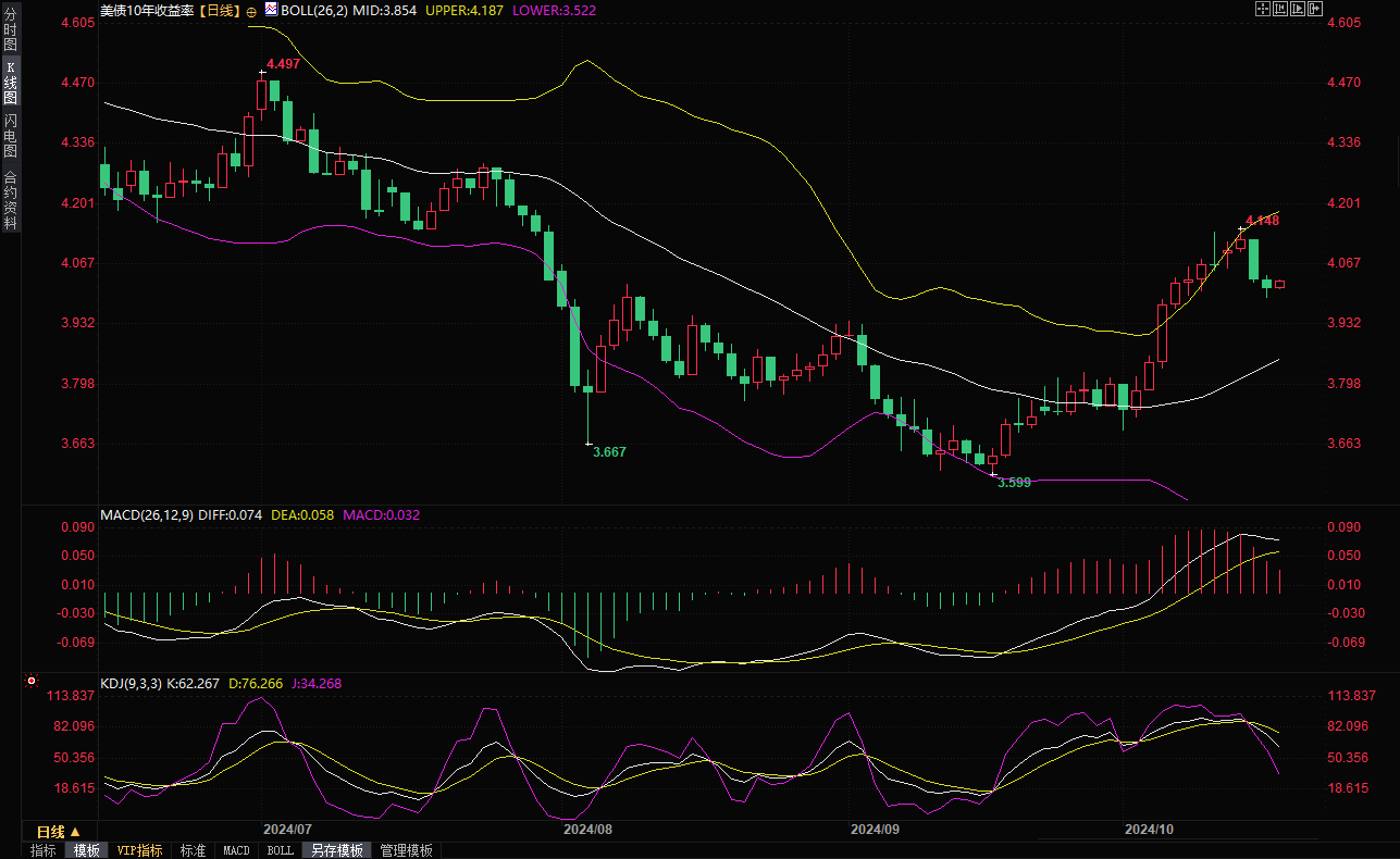 10年期国债收益率已连续四周上涨,上周触及4.12%的7月31日以来最高,此前强劲的就业报告削弱了美联储在11月政策会议上再次大幅降息50个基点的预期。