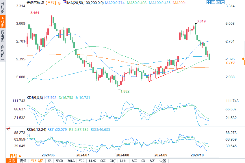 北京时间00:36,美国天然气报2.390美元/百万英热,跌幅4.32%。