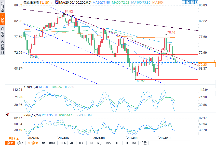 市场预测:需求疲软,前景悲观在短期内,原油市场仍然看跌,需求疲软和即将出现的过剩可能会使价格承压。虽然OPEC+减产可能会提供暂时的支撑,但整体前景表明,除非出现重大的供应中断或政策转变,否则油价将会下跌。