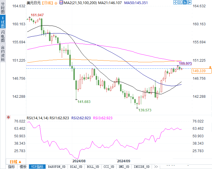 对于日元来说,美联储的鹰派立场使其承受更大压力。美日利差的扩大意味着投资者更愿意持有美元资产,日元需求相对降低。在日元徘徊于149附近的背景下,美元需求的上升成为推高汇价的重要推动力。
