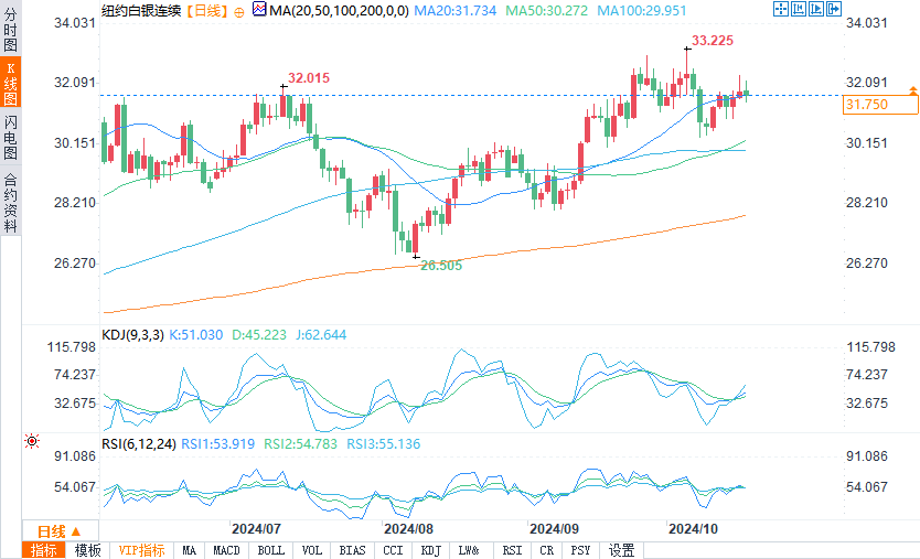 现货白银报31.552美元/盎司,跌幅0.32%。
