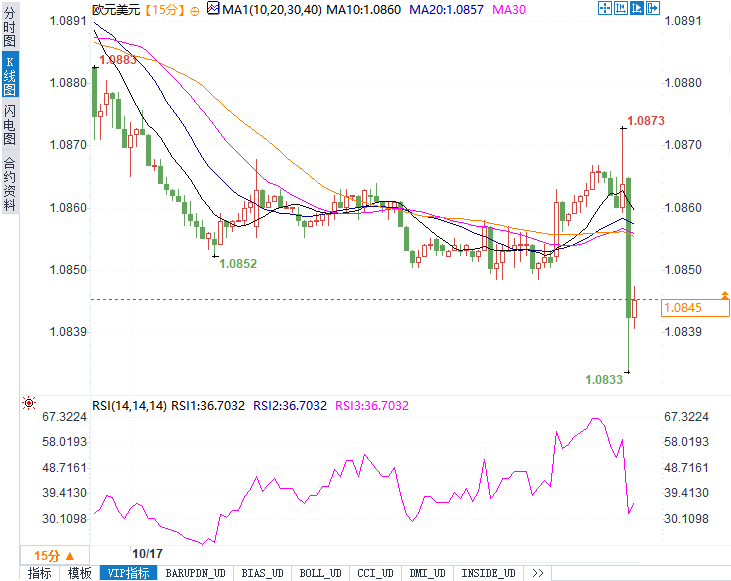 EUR/USD在ECB决议公布后短线走高逾10点后迅速回落,现报1.0846。分析师Justin Low表示,除了降息本身,ECB的政策沟通没有任何变化,因此市场对这份声明的反应相对平稳。交易员们预计,ECB在12月将再次降息25个基点,到明年6月还会有大约122个基点的降息。