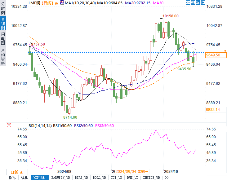 技术面上,铜价在9500美元附近的支撑较为稳固,若能守住这一水平,并且中国政策利好信号出现,铜价有望进一步反弹并挑战9700美元的短期阻力位。然而,美元的强势仍是市场的一大变数,投资者需密切关注美元走势和美联储的政策动向。