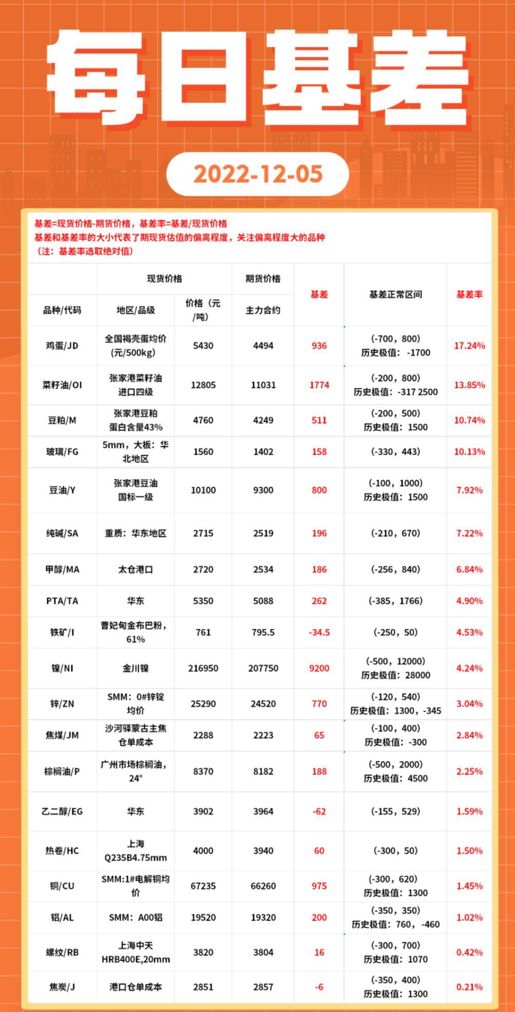 三立期货12月5日基差:一张图尽览有色金属、黑色系、能源化工和农产品基差