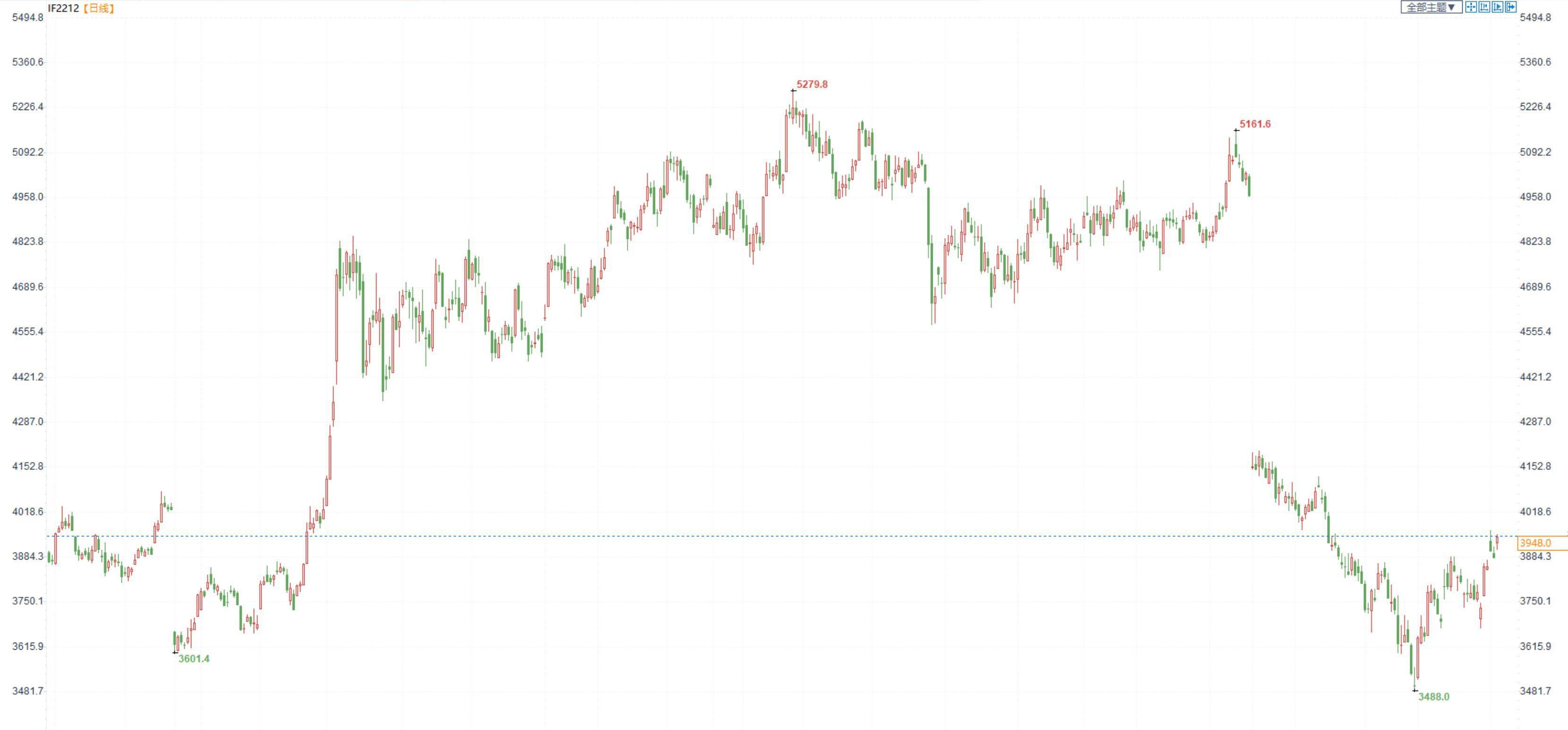 【今日涨跌】四大期指全线收涨。IH2212收盘价为2675.8,收涨2.023%;IF2212收盘价为3948.0,收涨1.53%;IC2212收盘价为6209.6,收涨0.39%;IM2212收盘价为6703.0,收涨0.19%。