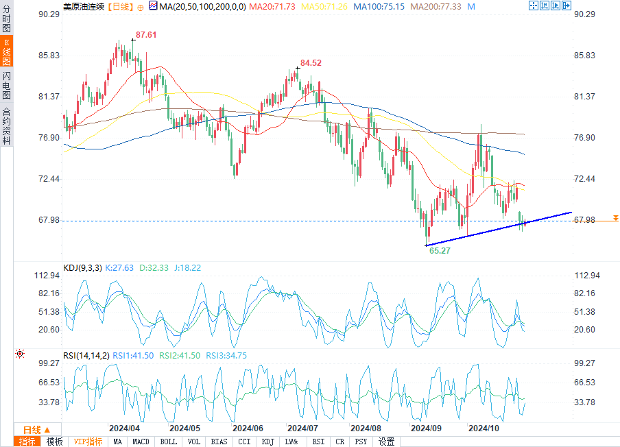 本周低点下方是10月初的低点66.22,但如果再次测试这一水平的话,连同9月低点64.81可能会在未来几天提供支撑。