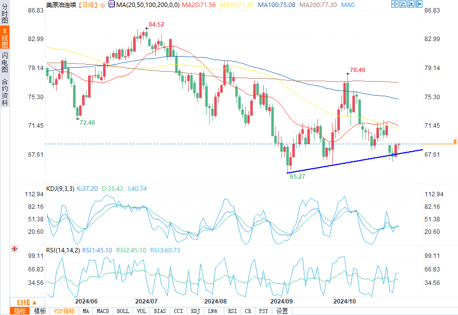 汇通财经APP讯——周四(10月31日)欧盘时段,WTI原油期货在盘中下探至68.3后反转,目前小幅上涨,报69.10美元,涨幅0.71%。