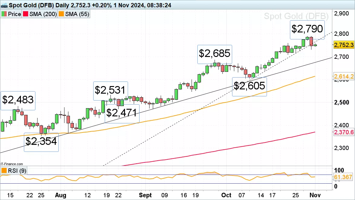 10月23日高点2,758美元上方的阻力位位于本周历史高点2,790.00美元。