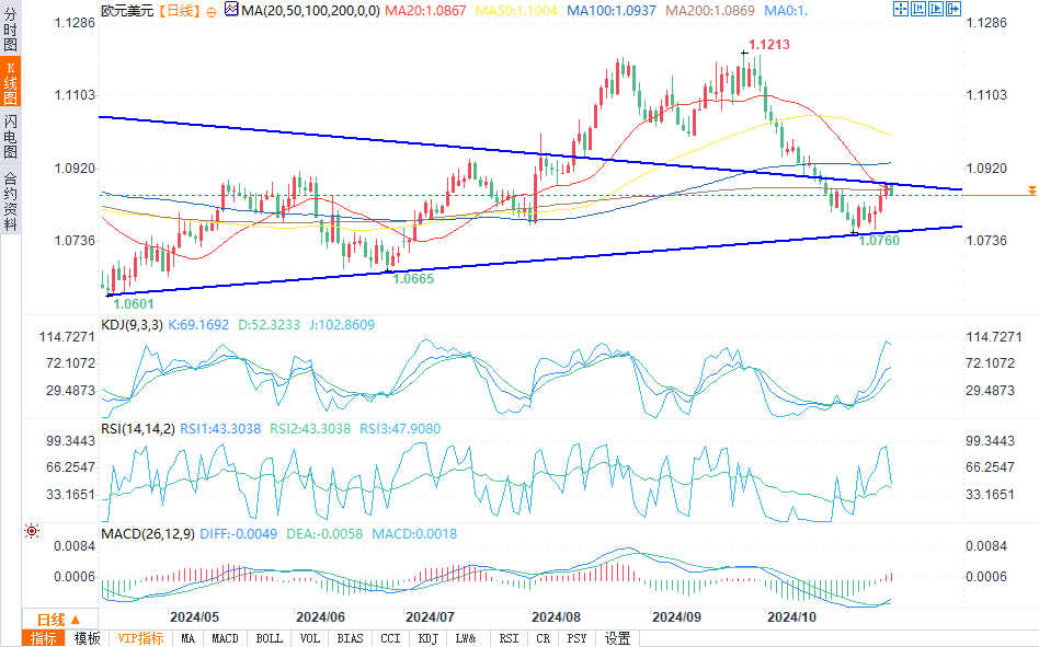 反弹背后的另一个因素是欧元/美元在10月初开始出现明显的看跌逆转后的短期超卖状况,在考虑测试长期上行趋势支撑之后,价格出现反弹。