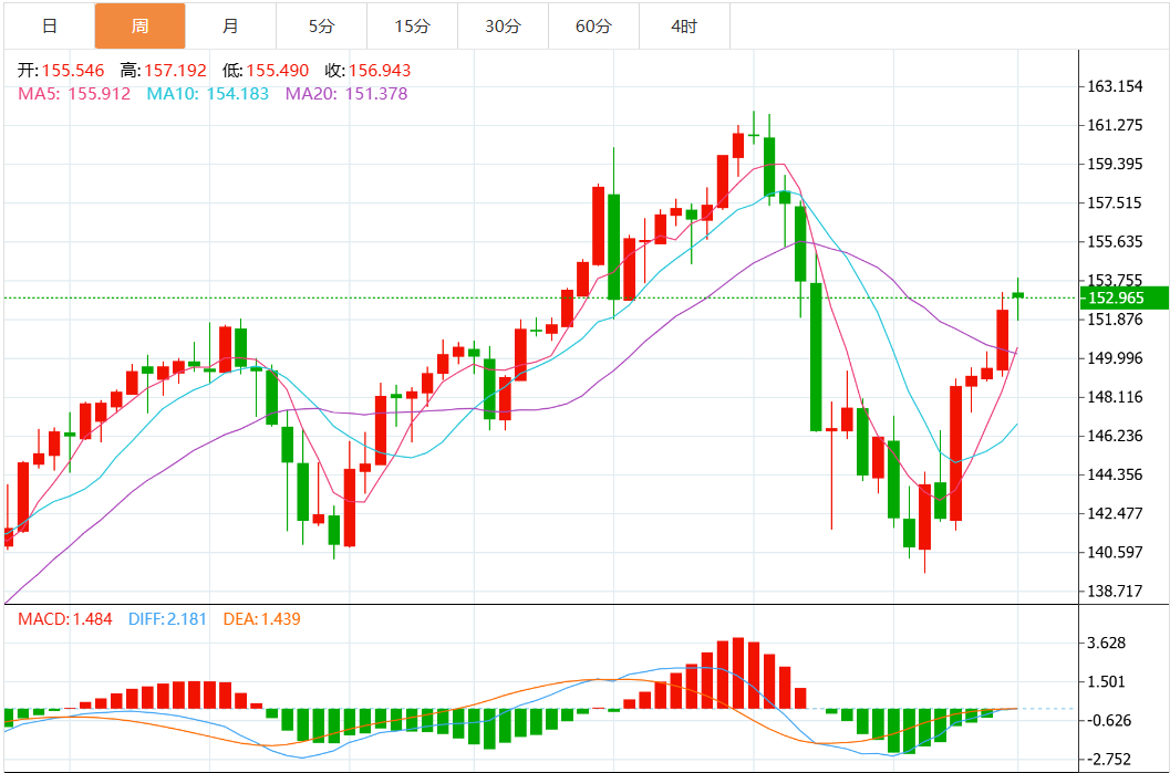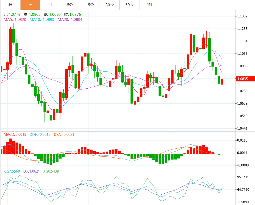 欧元兑美元本周下跌0.40%,收于1.084美元。虽然欧元区经济数据表现尚可,但欧元依旧面临美元走强带来的下行压力。市场对于欧洲央行未来的货币政策走向持观望态度,特别是与美联储降息预期相比,欧洲央行的态度更为谨慎。
