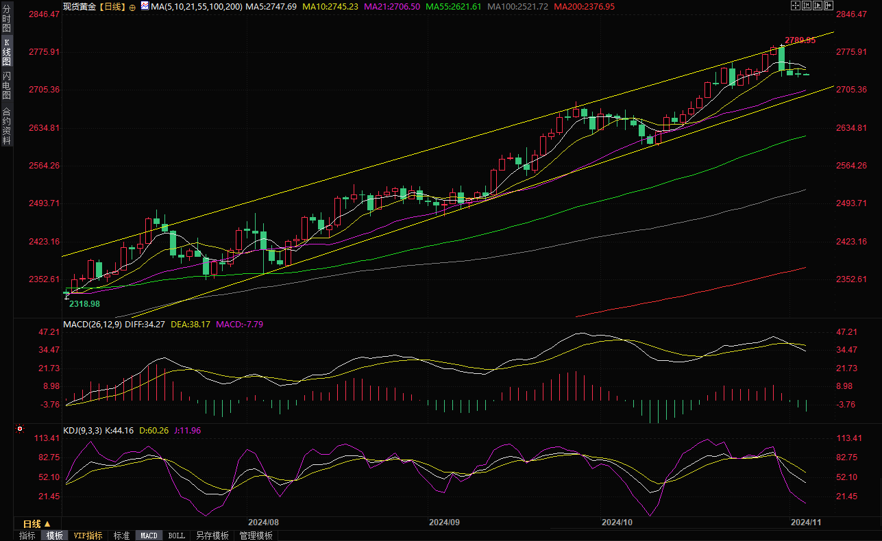 现货黄金延续上一交易日的窄幅震荡走势,目前交投于2734.64美元/盎司附近。金价周一接近收平,收报2736.48美元/盎司,因美国大选的不确定性近在眼前,市场观望情绪渐浓,投资者对有争议的选举结果和政治紧张局势的可能性进行了定价,同时投资者还密切关注本周晚些时候的美联储政策会议。