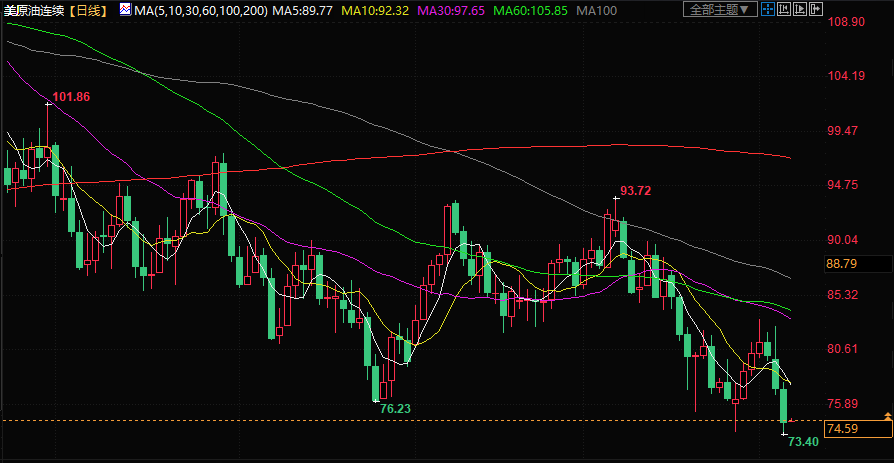 汇通财经APP讯——12月7日(周三)亚市盘初,美油交投于74.65美元/桶附近;美油周二在震荡交投中触及今年迄今最低水平73.4美元/桶,