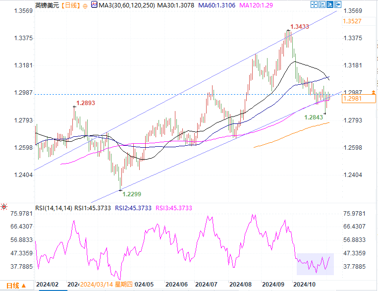 总的来看,本周的关键在于美国总统大选以及英美央行的政策决议。美联储的政策基调和英国央行的态度无疑将对英镑走势产生重大影响。如果英国央行鸽派情绪高涨,且美联储符合市场预期温和降息,英镑短期或将出现一定反弹空间。然而,投资者需警惕大选结果对市场情绪的干扰,尤其是在政策不确定性较高的背景下,英镑波动性或将加剧。