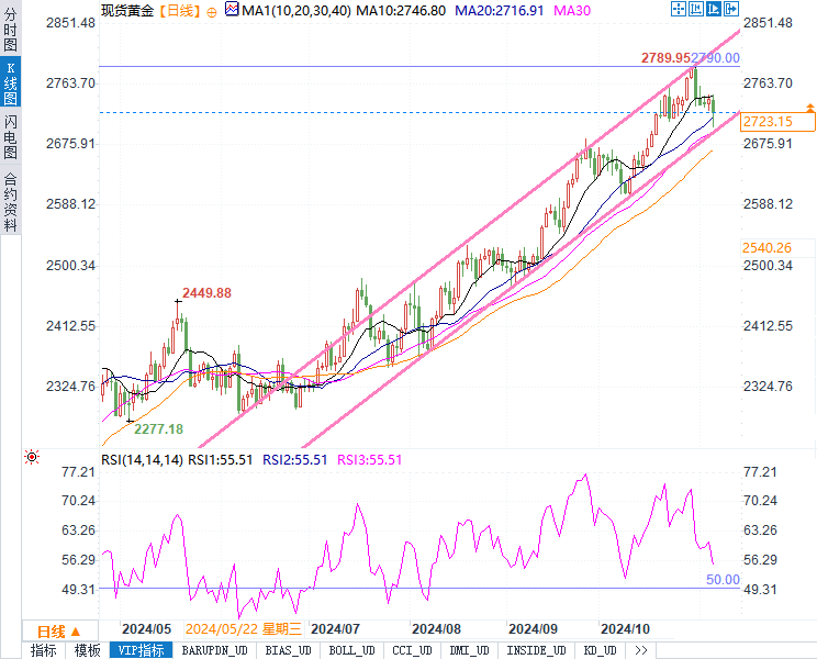知名机构分析师指出,特朗普的再次当选或将引发财政刺激措施,进而在中长期内推动黄金价格上涨。若美元回落或美国政局再度出现波动,黄金仍具备上涨空间。总体来看,市场对黄金的看涨情绪并未完全消散,尤其是未来经济增长预期趋于放缓时。