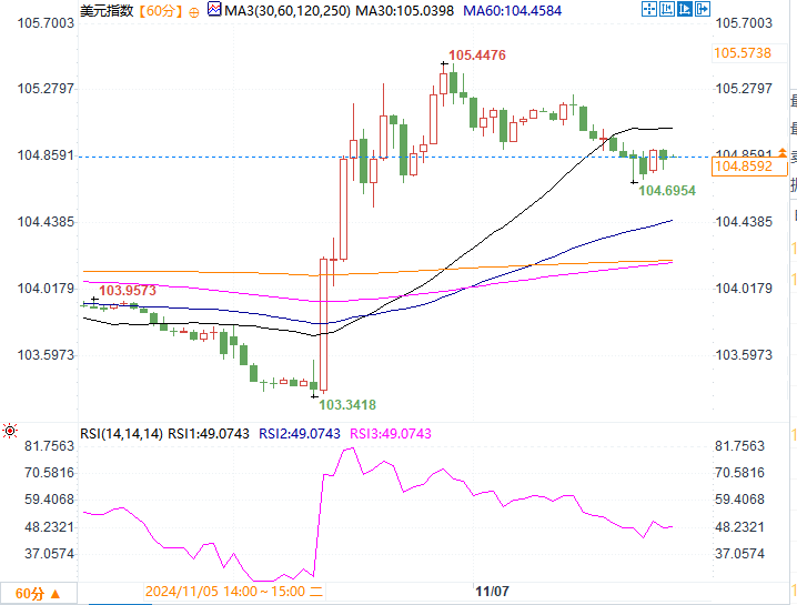 美国总统特朗普连任后,市场对其政策的经济刺激效应预期重新攀升,美元一度触及高位。然而,在英美央行决议前夕,美元回调。分析人士认为,特朗普的经济计划可能在短期内提振需求,但随之而来的赤字和通胀风险可能使美元未来面临较大波动。