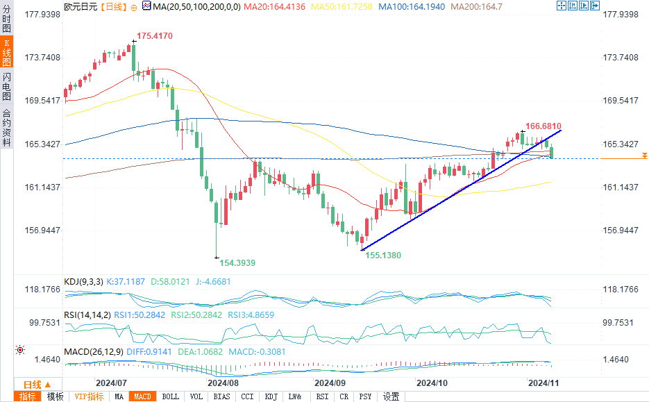 标题:11月8日欧元/日元、英镑/日元技术分析