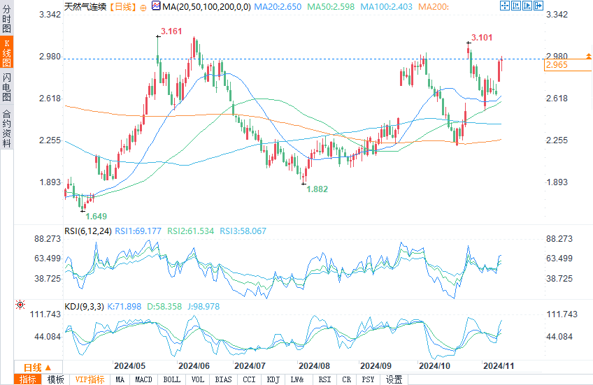 尽管周二股市有所回落,但对11月底股市趋冷的预测提供了有限的支持。周一的空头回补带动2024年12月合约上涨10%,因交易员预期供暖需求将走强。然而,如果欧洲模式变暖,或者如果GFS的预测与不那么激进的寒冷预测相一致,天然气价格可能会进一步走弱,可能会测试更低的支撑位。