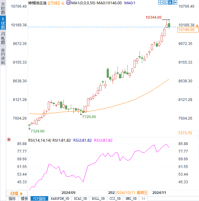 不过,棕榈油库存下降仍可能在中期为市场提供一定支撑。一旦市场消化了当前的高价压力,价格可能会在后续的库存调整或供应减少背景下出现温和反弹。因此,交易者在高位波动中应当关注出口动态和国际市场对马来西亚棕榈油的需求变化。