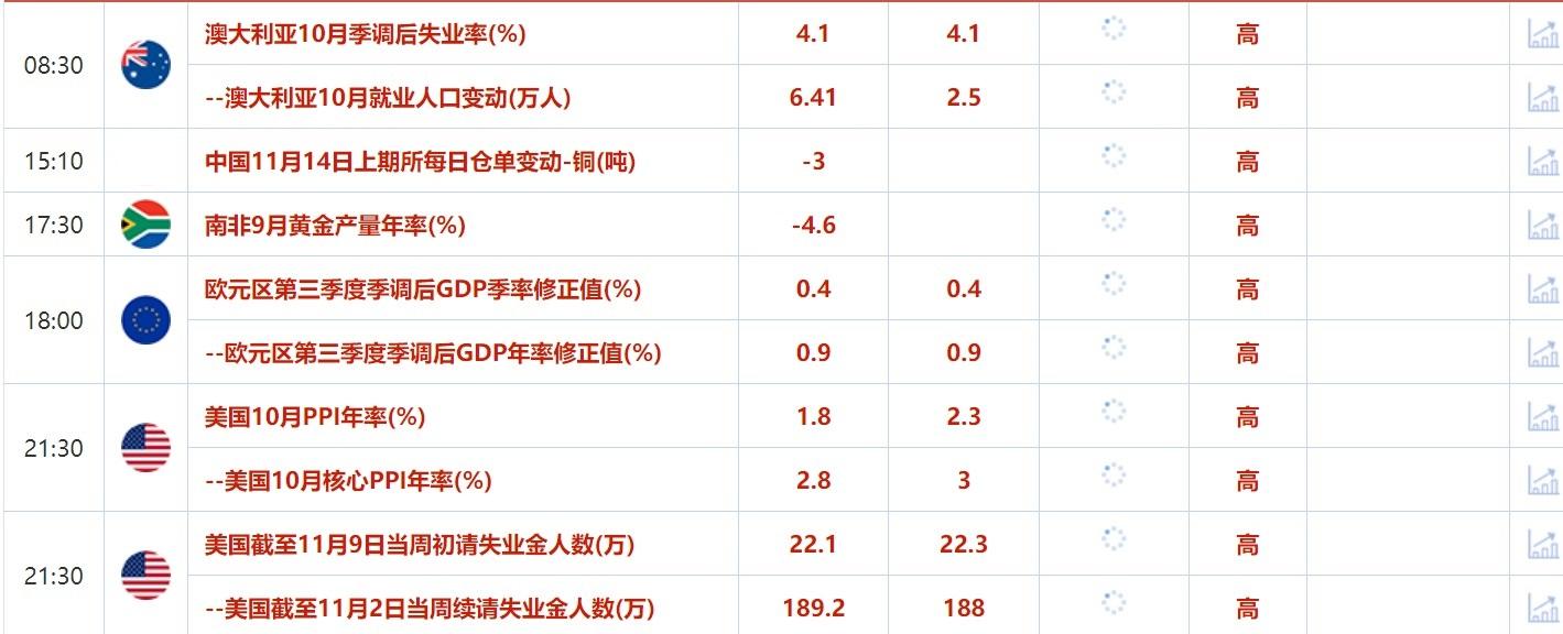 汇通财经APP讯——以下是周四( 11月14日)财经早餐,包括基本面重要消息、贵金属/原油/外汇/商品/股市/债市等行情、国际要闻、国内要闻、机构观点、今日财经重要数据及财经大事。美国CPI通胀反弹,但未改市场对美联储12月降息的押注,