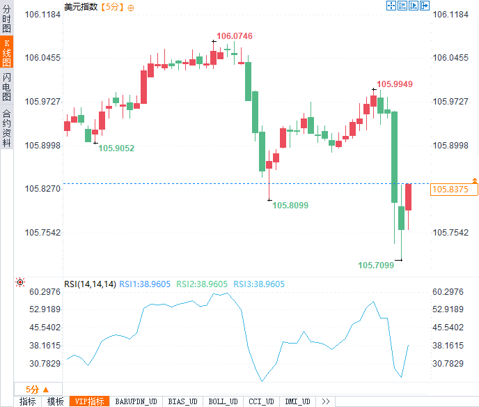 美元指数(DXY)短线下挫近30点,现报105.85,显示市场对数据的反应相对谨慎。同时,美国股指期货普遍上扬,