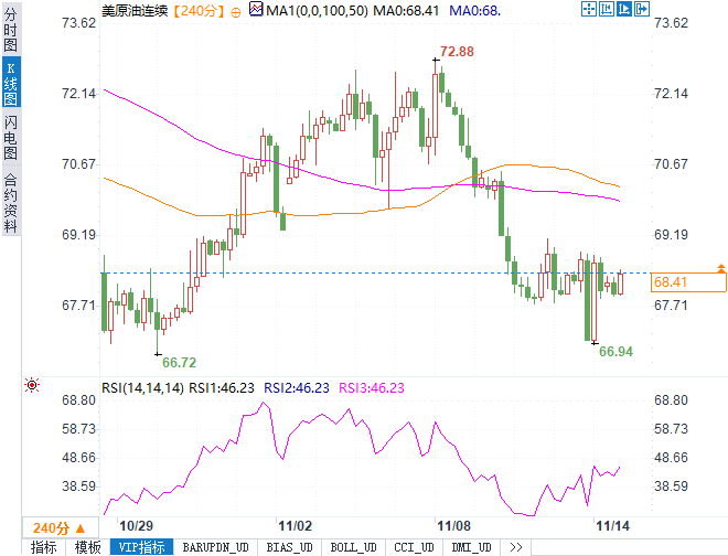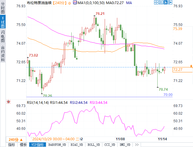 不断走高,兑一揽子货币创下一年来新高,并连续第五日上涨。美国10月份的通胀数据符合预期,支撑了美元强势。Phillip Nova的投资分析师Danish Lim认为,美元走强对原油构成显著下行压力,当前市场波动性增加的情况下,油价存在进一步回调的风险。OANDA的高级市场分析师Kelvin Wong也指出,美元上涨反映了市场对美国需求的担忧,同时10年期美国国债收益率和通胀预期走高,将进一步加大对石油需求增长的抑制。