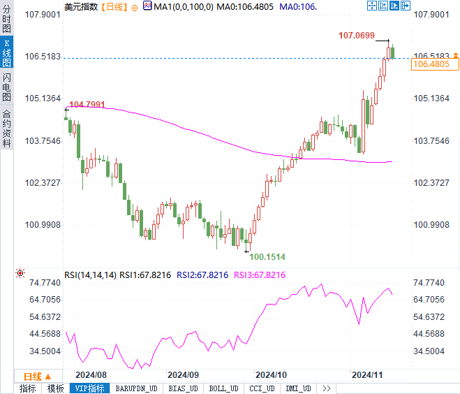 美元指数升至106.81附近,创下自9月以来的单周最佳表现。市场对美联储年内降息的预期从83%骤降至59%,进一步推动美元走强。