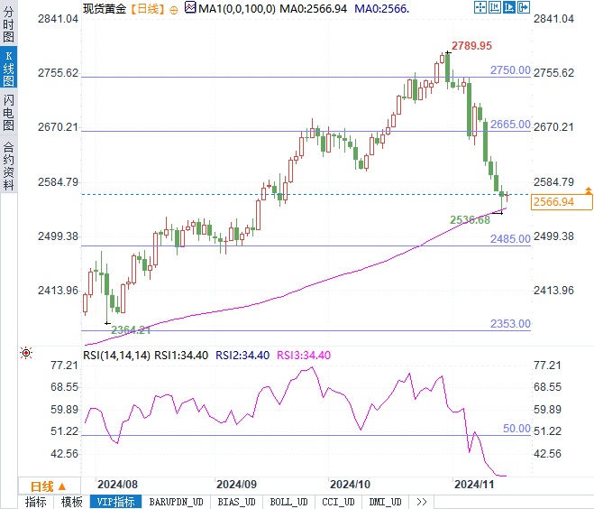从技术面来看,黄金在2550美元/盎司附近有一定支撑,但若跌破该水平,可能进一步测试2520美元一线。