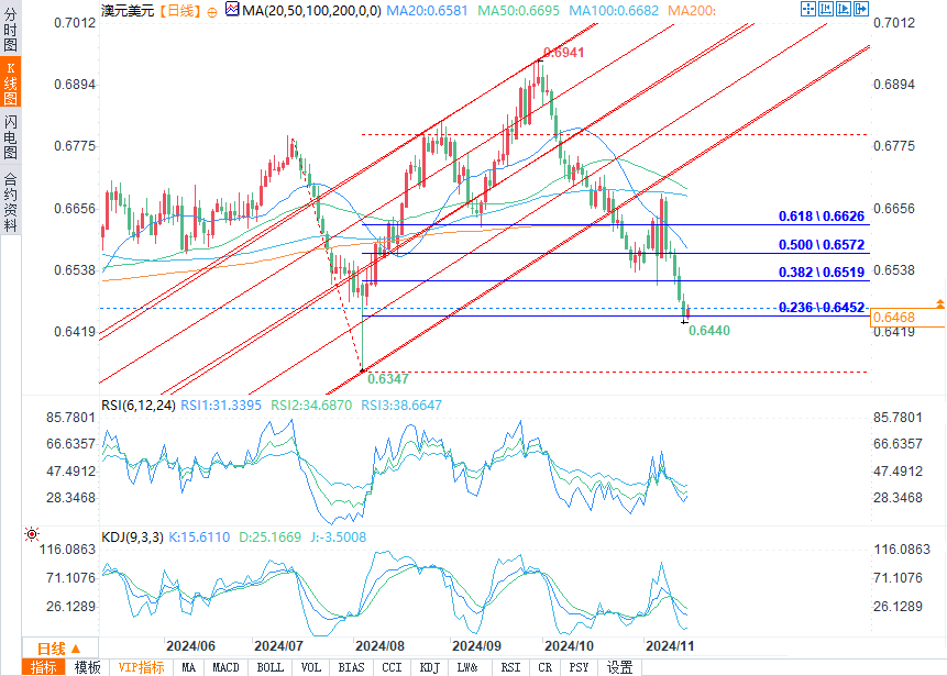 澳元/美元在上周美国大选后出现反弹,并接近澳元/美元100日移动均线后,趋势转向卖家,此后一直将价格推低。