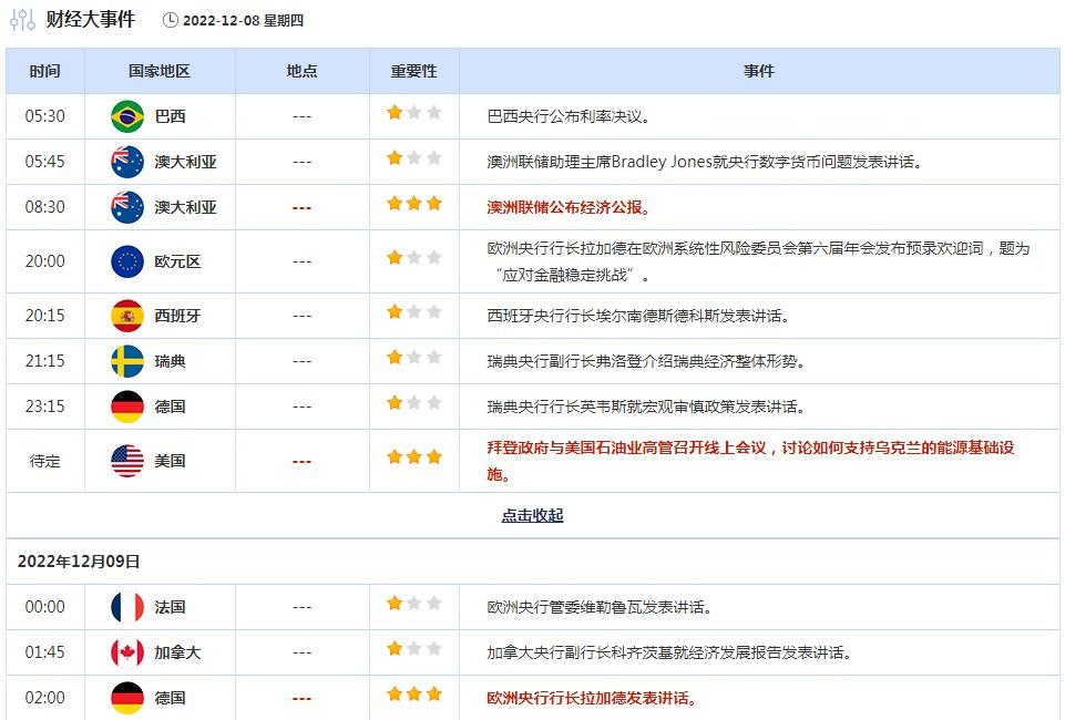 荷兰国际银行:经济衰退担忧,鹰派美联储,美元可能表现良好荷兰国际银行表示,由于对全球经济衰退的担忧加剧,促使投资者转向避险资产,同时美联储继续抗击通胀,美元应继续受到支撑。荷兰国际银行分析师Chris Turner表示:“在过去六周出现广泛的风险反弹后,金融市场现在似乎开始接受2023年衰退的观点。”Turner称,只要美联储保持“鹰派立场”,美元就应会表现良好。在美联储12月14日的政策决定之前,