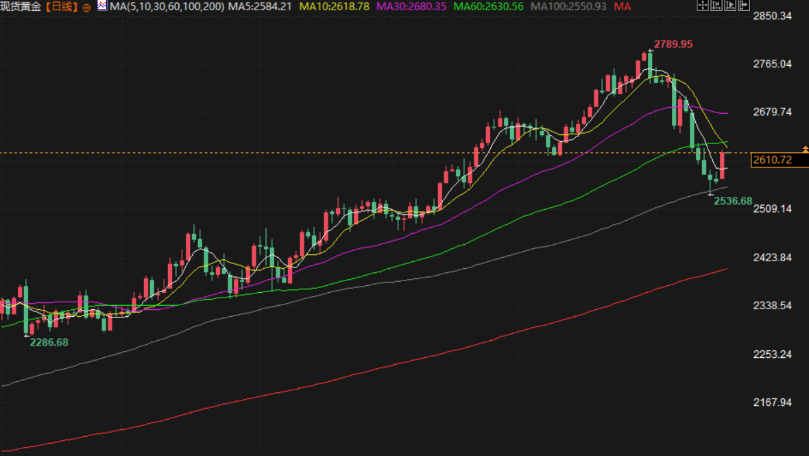 金价在连续六日下跌后于周一急升,因美元大涨势头停滞,且俄乌冲突的不确定性加剧重新引发了避险需求。现货金 跳涨1.8%,至每盎司2,608.19美元,脱离了上周四触及的两个月低位。美国期金结算价报2614.60美元,上涨1.7%。