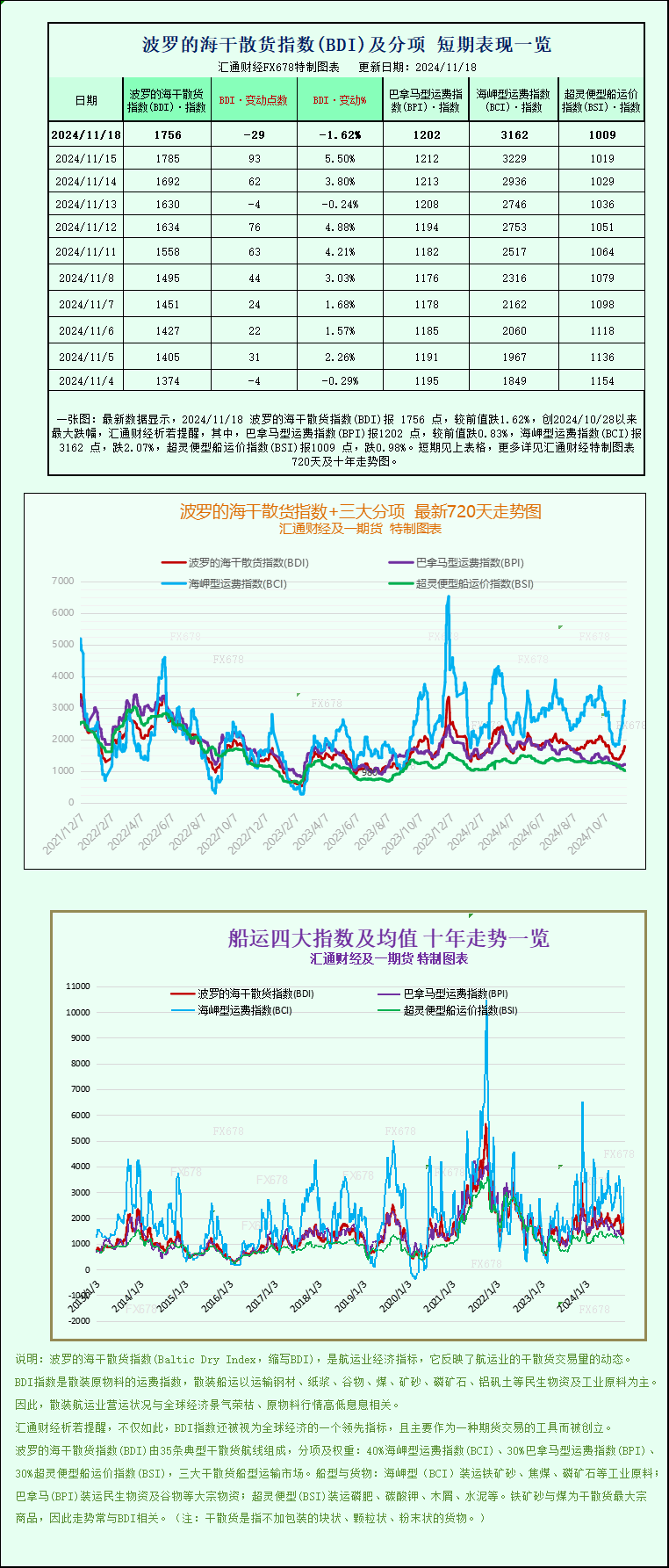 一张图:波罗的海指数因所有船舶板块下跌而下跌