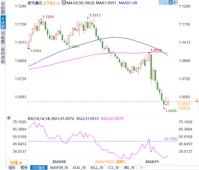 欧元维稳,关注本周关键数据尽管欧元依旧接近一年低点,但短期内受益于美元回调。分析师Francesco Pesole认为,如果特朗普新政府政策强化保护主义,欧元可能面临更大压力。他指出:“明年欧元可能进一步下探,甚至接近平价,这将取决于政策执行力度。”