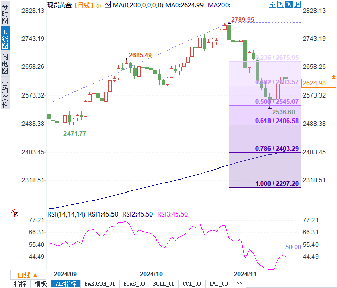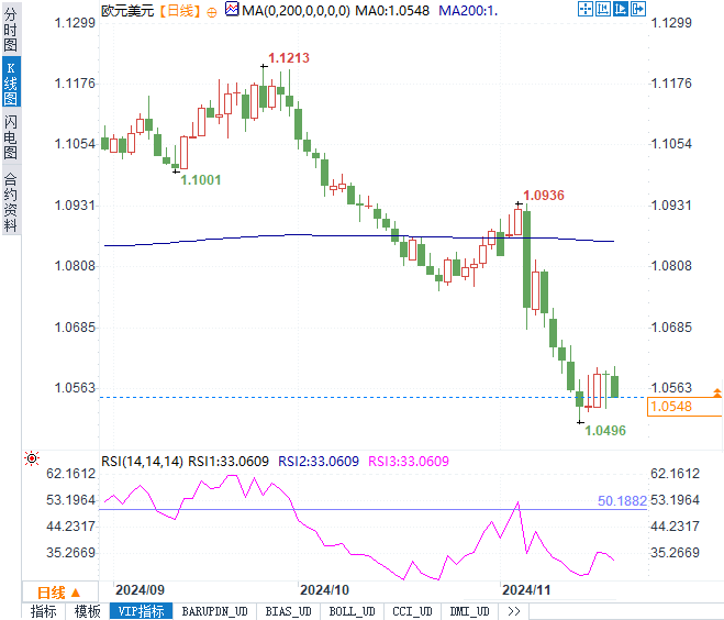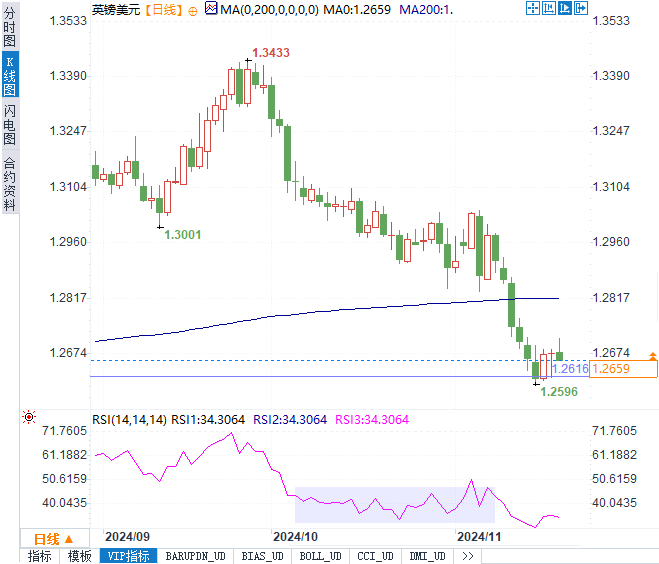 美元指数上扬至106.67附近,显示出强劲的恢复力。推动这一反弹的原因在于避险情绪的减弱以及市场对美联储政策预期的调整。此前,俄乌冲突升级以及俄方修改核武政策一度提振避险情绪,但随着俄罗斯外长强调“将尽一切可能避免核战争”,市场的担忧有所降温。同时,美联储12月降息预期的下调也进一步巩固了美元的支撑。