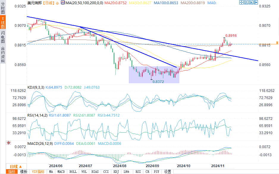 标题:11月21日欧元/美元、英镑/美元、美元/瑞郎、澳元/美元技术分析