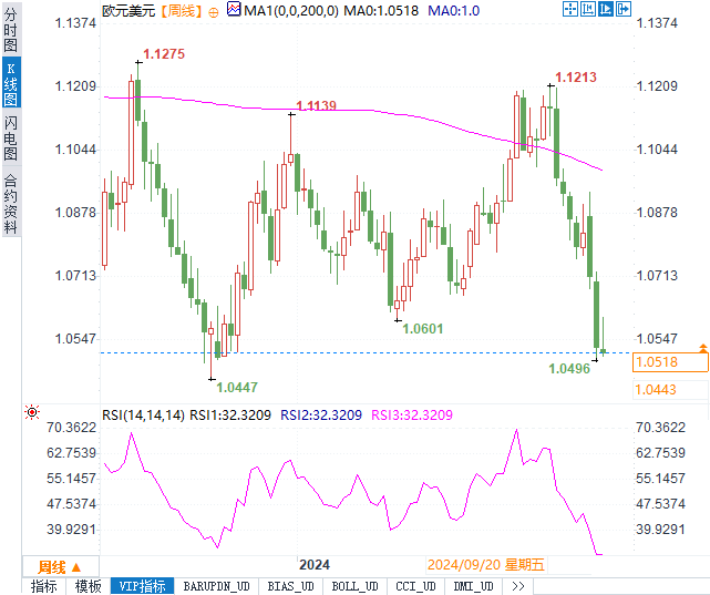 欧元兑美元则未能摆脱下行趋势,当前报1.0518,日内下跌0.24%。市场普遍关注欧洲央行降息路径以及欧洲经济数据表现,尤其是将于晚间公布的消费者信心指数初值。欧洲央行内部对于宽松政策的步伐仍存在争议,降息50个基点的可能性仅为20%。此外,地缘政治的不确定性,包括俄乌局势升级,也使欧元面临额外压力。