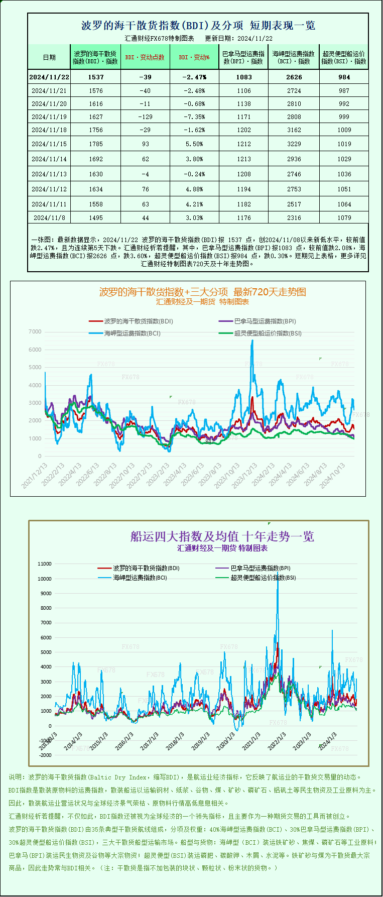 一张图:波罗的海指数因所有船舶运价下跌而下跌