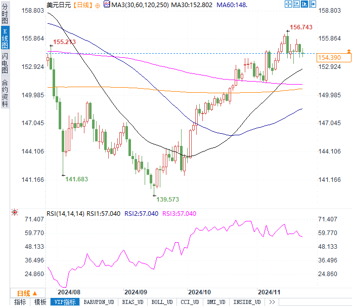 外汇市场本周呈现美元一枝独秀的格局,美元走强依旧是本月市场的核心主题,背后动力来自于美国经济的韧性以及美联储政策预期的调整。本周早些时候,美联储官员在公开发言中显露出分歧。尽管12月降息25个基点的市场概率目前不足60%,但部分政策制定者倾向于进一步宽松,这在一定程度上限制了美元的上涨空间。然而,由于当选总统特朗普的政策可能重新激发通胀压力,美元仍受到稳固支持。知名经济学家指出,“未来可能的财政刺激和放松监管将为美国经济增添动力,但这些措施也可能迫使美联储在降息路径上更加谨慎。”