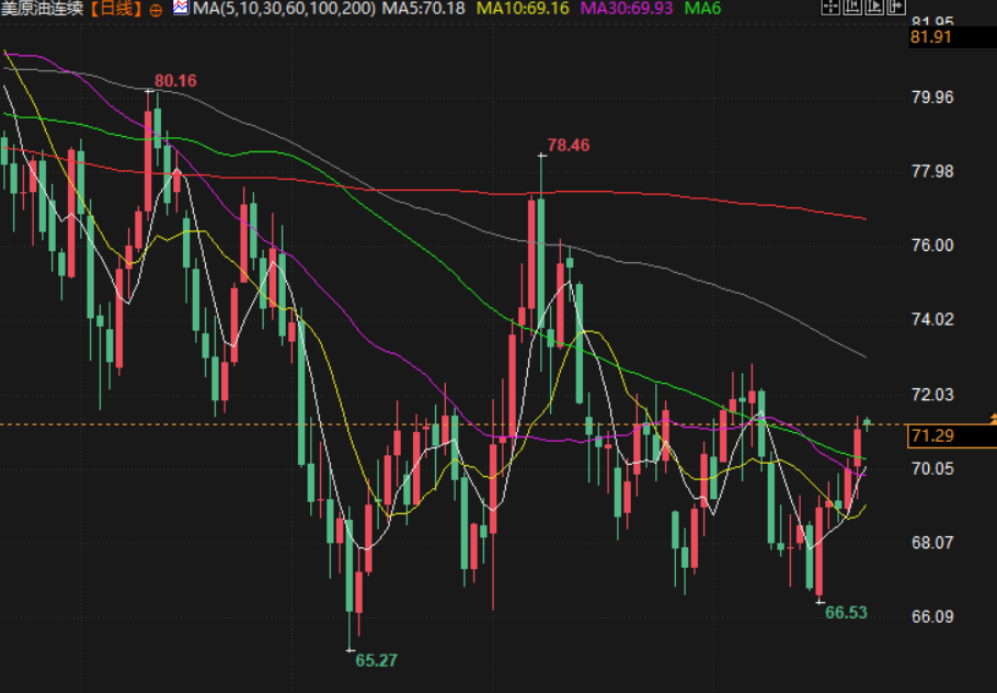 美原油交投于71.30美元/桶附近,地缘支撑油价之外,美国对俄罗斯天然气工业银行实施了新的制裁也提振油价,本周重点关注地缘局势的进一步发展。