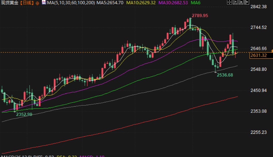 现货黄金微跌,交投于2631.51美元/盎司附近,尽管贸易紧张风险再起,但以色列与黎巴嫩达成停火协议,以及美联储对进一步降息持谨慎态度拖累金价涨幅,