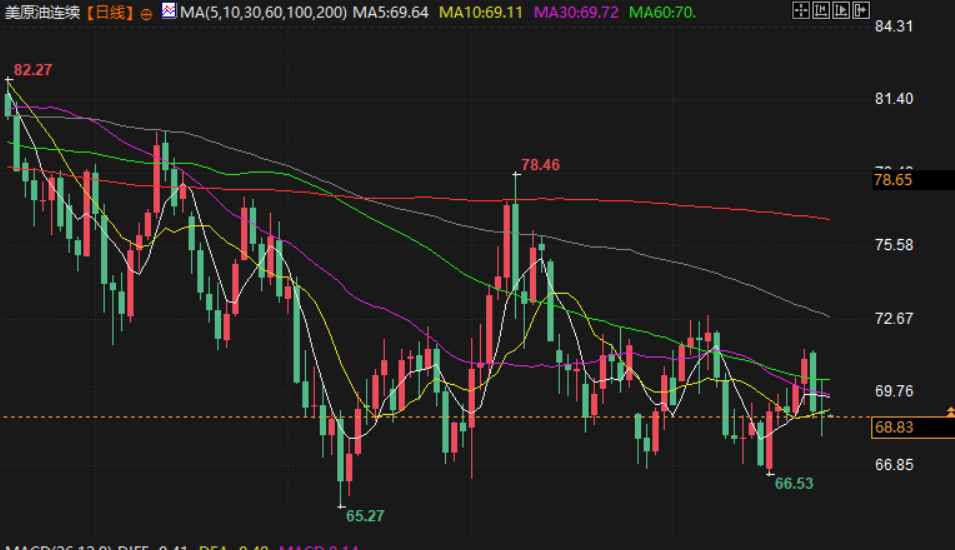 美原油交投于68.82美元/桶,OPEC+延迟产量恢复计划,但以色列与黎巴嫩达成停火协议,降低了石油的风险溢价,早间API数据显示,美国原油库存下降支撑油价。