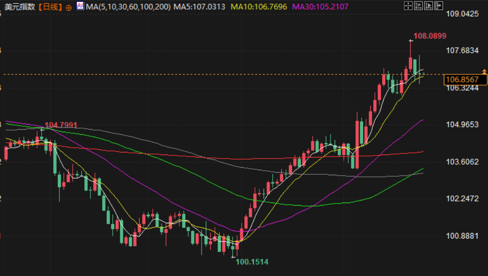 美元指数周二上涨至 107.15,高于周一晚些时候的 106.86。澳元亚市早盘一度跌至逾三个月低点0.6434美元,尾盘下跌0.83%,报0.6448美元。