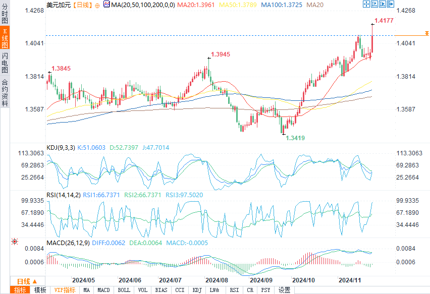 美元在新闻头条上飙升,反映出它将增加其他货币贬值的风险,以抵消关税。这也让人对特朗普提名的财政部长贝森特(Scott Bessent)将能够作为理性的声音,提供对市场友好的政策成果(包括关税)的说法产生了严重质疑。